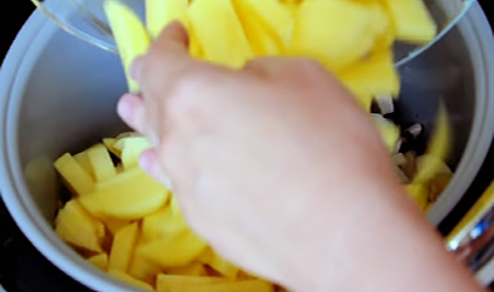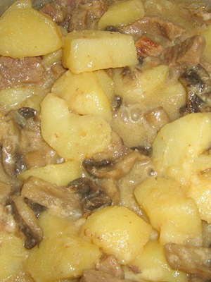 - Champignons surgelés avec pommes de terre et oignons dans la mijoteuse Polaris