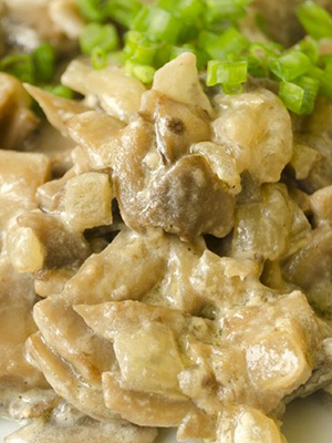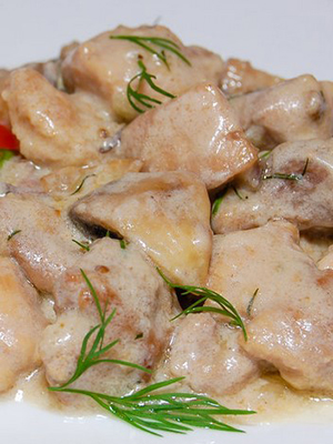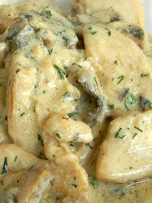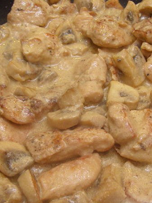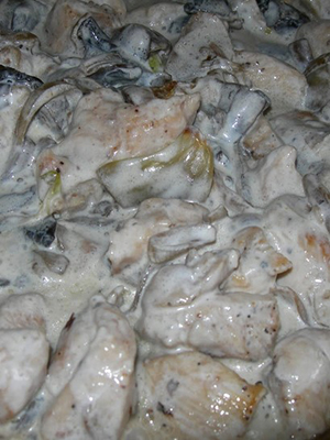 - Poitrine de poulet avec oignons champignons en conserve à la crème sure