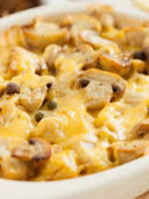 - Poitrine de poulet aux champignons, pommes de terre et oignons