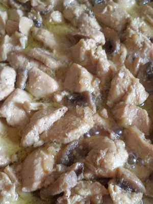 - Poitrine de poulet aux champignons, oignons et poivrons