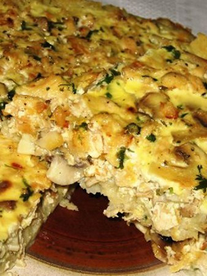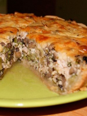 Tourte à la poitrine de poulet avec champignons frais ou marinés