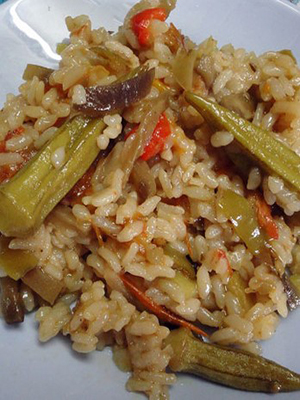 - Ajoutez ensuite les légumes, le riz, laissez mijoter pendant 10-15 minutes, sans oublier de remuer.