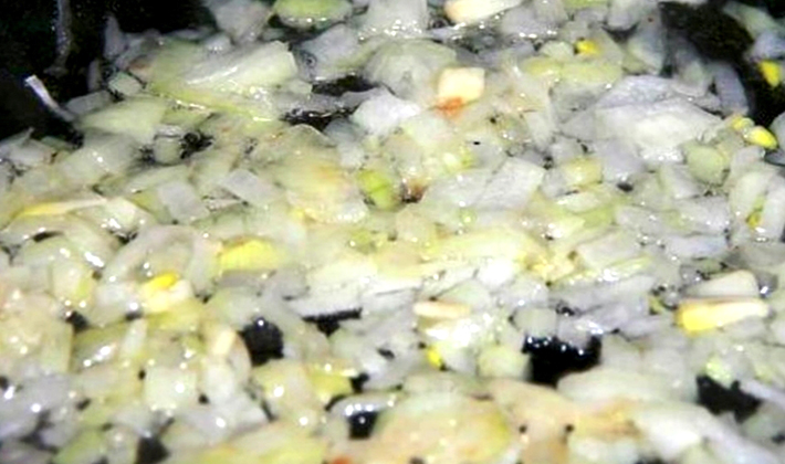 Hachez finement l'oignon avec l'ail et faites-le frire jusqu'à ce qu'il soit doré.