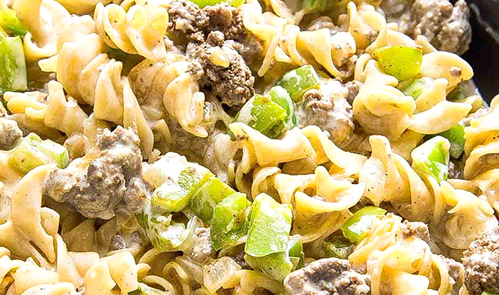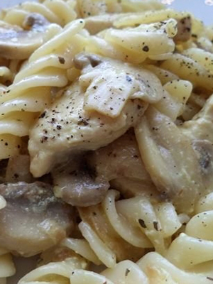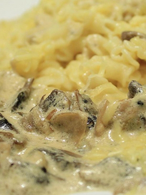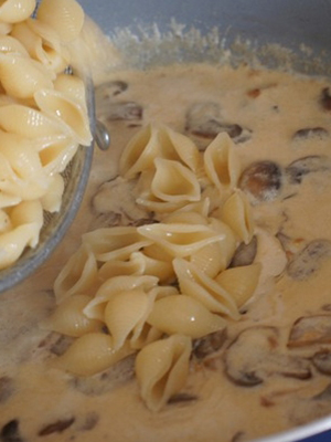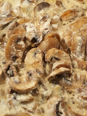 - Pâtes aux champignons frits dans une sauce à la crème sure