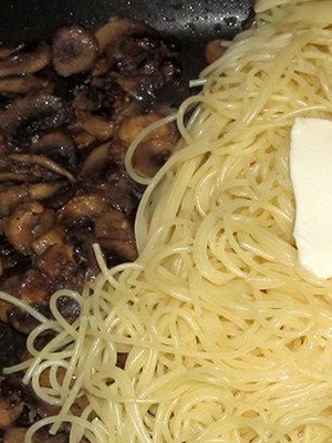 Pour commencer, il vaut la peine de faire frire les champignons, les couper en fines tranches et de mettre de l'eau bouillante pour les vermicelles. Si vous aimez les champignons épicés, poivrez bien, mais ne ajoutez ni ail ni oignons - la sauce béchamel ne tolérera pas des ingrédients aussi agressifs à côté.Lorsque les champignons sont prêts, mettez les pâtes dans de l'eau bouillante salée.