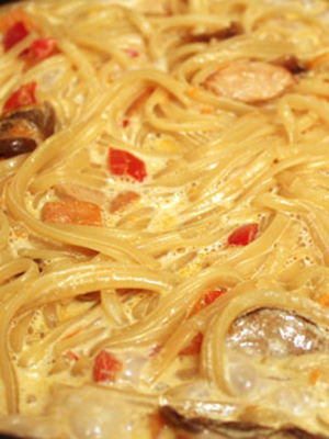 Cette option de cuisson des pâtes convient à ceux qui surveillent leur alimentation et ne mangent pas de pâtes grasses. Mais vous pouvez vous régaler de tels vermicelles: ils sont faibles en calories et contiennent beaucoup de protéines, ce qui est utile pour maintenir le tonus musculaire. Donc, pour préparer cette pâte, vous aurez besoin de: