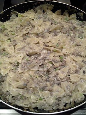 - Pâtes marine à la viande hachée sautée et aux champignons