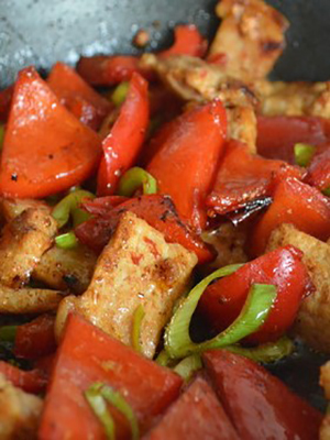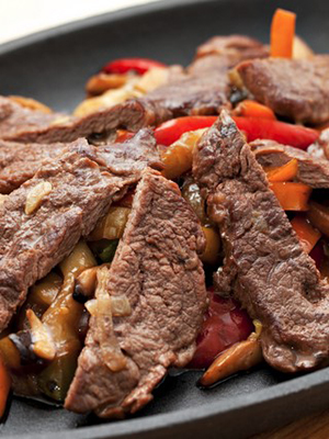 - Viande aux champignons, poivrons et oignons