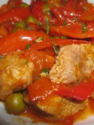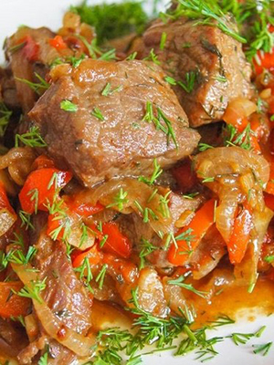 - Ragoût de viande avec champignons et poivrons
