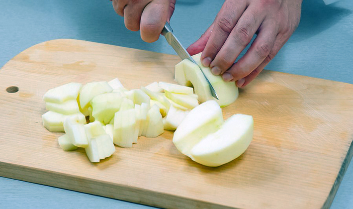 Pelez les pommes et épluchez-les, coupez-les en fines tranches.