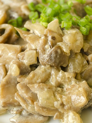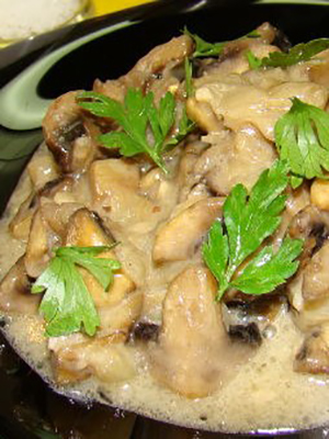 - Viande d'oie aux champignons à la crème sure