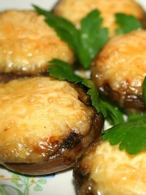 Cette recette est assez simple et appartient à la catégorie de ceux où vous pouvez donner libre cours à votre imagination et à vos expériences. Ingrédients obligatoires - fromage et champignons. Aux champignons, cuit au four avec du fromage et de l'ail, des épices et des légumes, vous pouvez ajouter à votre goût.