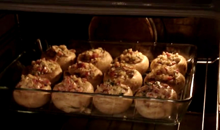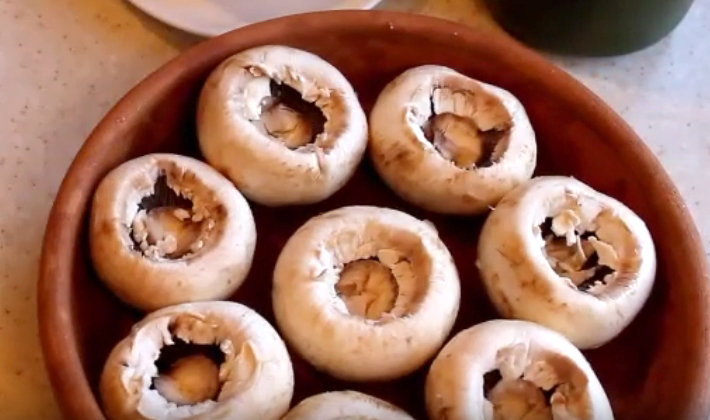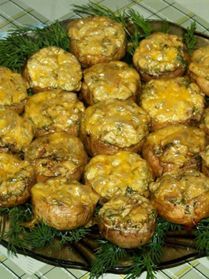 Farcies avec un tel mélange de champignons et d'ail, cuire au four pendant 20-30 minutes. Pour empêcher les chapeaux de brûler par en dessous, graisser la poêle avec de l'huile.