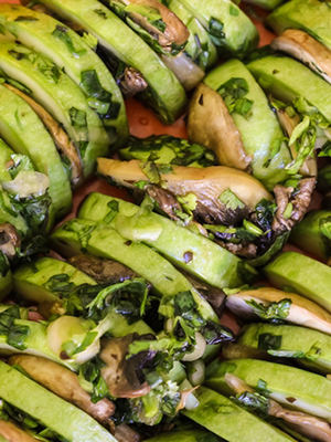 - Ratatouille aux champignons au four avec du fromage et de l'ail au four
