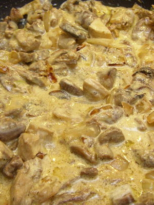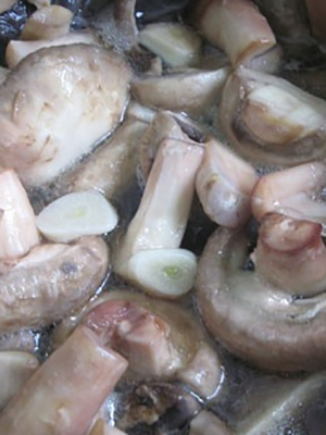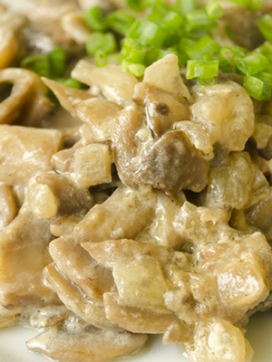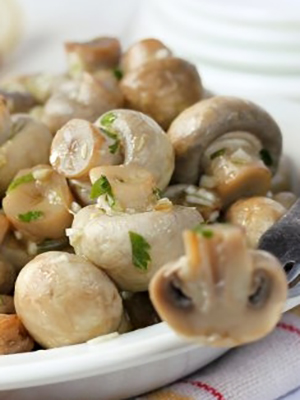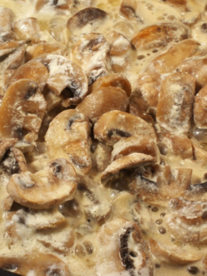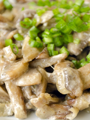 - Champignons frits cuits à l'ail, aux oignons et à la crème sure
