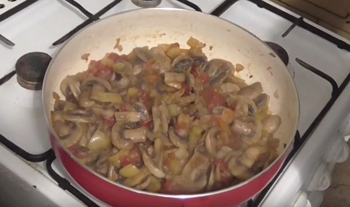 Pour cuisiner "Ratatouille", vous devez préparer la sauce correctement. Dans ce mode de réalisation, champignon. Faire sauter des champignons finement hachés dans de l'huile de tournesol avec de l'ail et des oignons. Lorsque les champignons ont bouilli et que les oignons sont devenus mous, ajoutez la moitié des tomates dans la casserole, préalablement pelées et hachées finement. Ajoutez le vinaigre, laissez mijoter à feu doux jusqu'à ce que la sauce devienne épaisse.