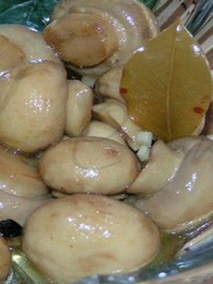 Mélangez des champignons bouillis avec de l'ail, coupez-les en fines assiettes et versez de l'huile. Ajoutez-leur du vinaigre et du jus de citron.