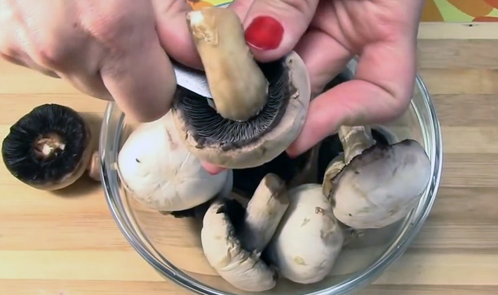- Pelez, lavez, pelez les champignons et retirez délicatement les cuisses des bouchons.