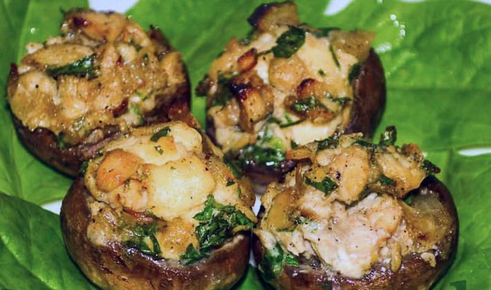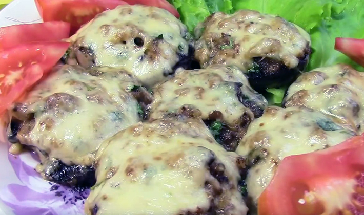 Chapeaux Champignon farcis aux cuisses de fromage et cuits au four