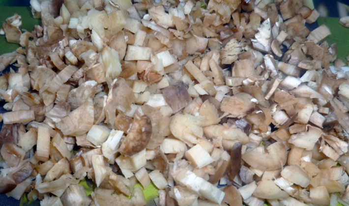 - Laisser refroidir, couper la tomate en petits cubes, ajouter aux champignons et aux oignons.