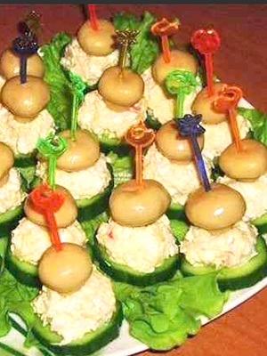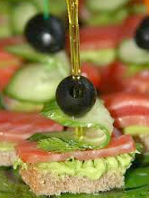 - Garnissez les canapés de persil, percez avec des brochettes et servez.