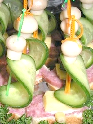 Canapés aux champignons marinés sur des brochettes: recettes avec des photos