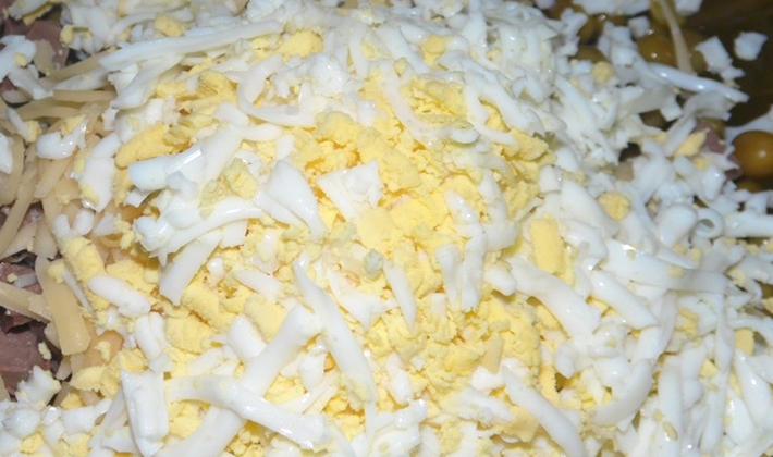 - Hacher finement les champignons, mélanger avec de la mayonnaise et de l'œuf.