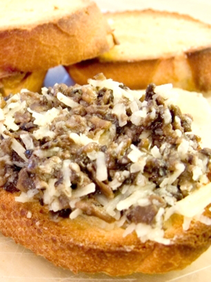 Canapés aux champignons bouillis et frits
