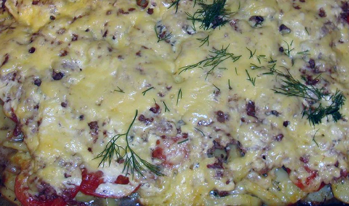 - Retirer, enlever le papier d'aluminium, saupoudrer le plat avec une couche de fromage râpé et à nouveau mettre au four pour cuire au four pendant encore 15 minutes.