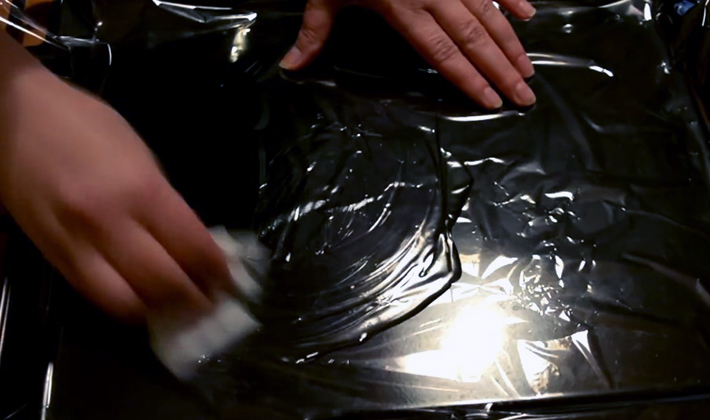 - Couper les deux côtés, préalablement recouverts d'un film plastique ou d'un sac en plastique.