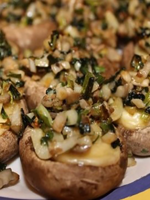 - Les herbes hachées et le fromage à la crème râpé sont introduits dans les champignons à la crème sure.