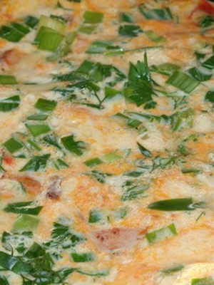 - Salez au goût, poivrez un peu et ajoutez du fromage râpé mélangé à de l'aneth vert haché.