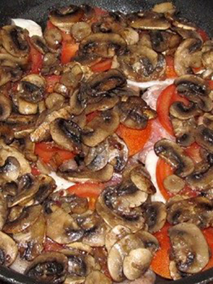 Recette pour la cuisson des champignons dans une poêle avec des tomates