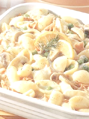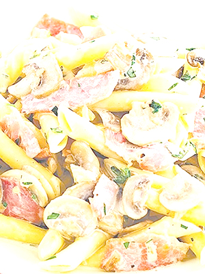 - Pâtes aux champignons, fromage, jambon et poivron