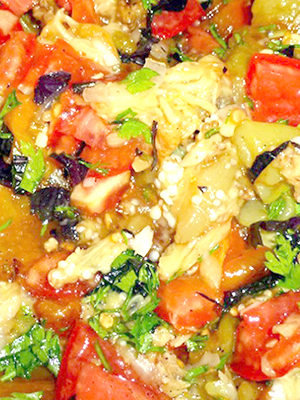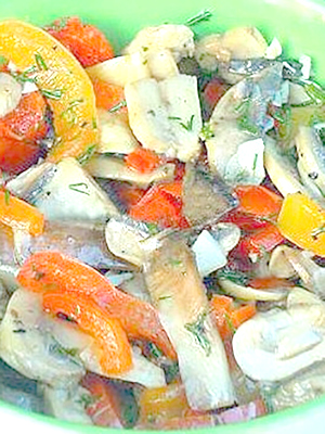 - Salade de poivrons aux tomates et aux champignons en conserve