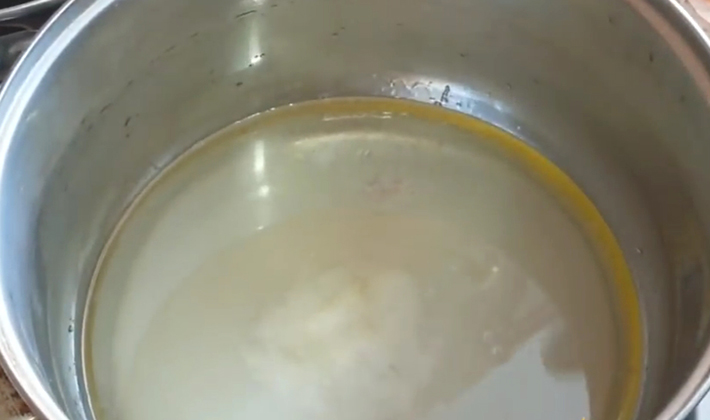 - Versez l'huile végétale dans une casserole, faites chauffer, mettez le poulet, faites frire des deux côtés jusqu'à coloration dorée.