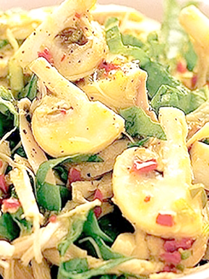 Salade de champignons au poivron et oignons épicés.