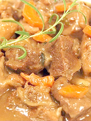 - Boeuf aux champignons, poivrons et oignons au chaudron