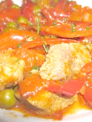Porc aux champignons, poivrons et pâte de tomates