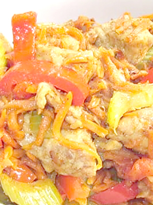Poulet aux champignons et au poivron.