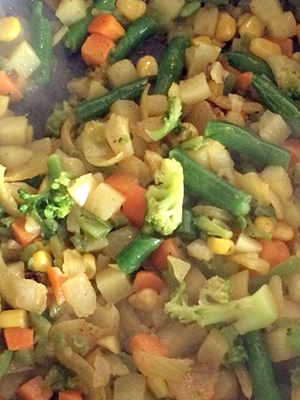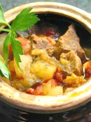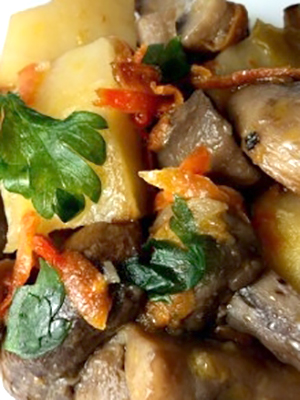 - Champignons coupés en deux. Versez l'huile dans une casserole, faites chauffer, mettez les légumes dedans, coupez en petits cubes, faites sauter pendant 5 minutes. Après un certain temps, versez de l’eau ou du bouillon dans les légumes, laissez mijoter à mi-cuisson. Ajoutez ensuite les pommes de terre, coupées en quatre, aux légumes. Laisser mijoter jusqu'à cuisson.
