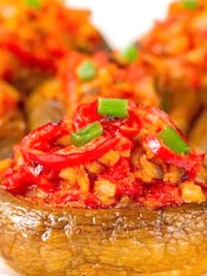 Pour préparer les champignons, cuits au four avec des légumes, les champignons sont nettoyés et coupés des cuisses. Les oignons hachés et les cuisses de champignons sont cuits dans ½ portion d'huile, en ajoutant une petite quantité d'eau et une pincée de sel. Porter à un état doux, retirer du feu et mélanger avec des tomates hachées et un œuf à la coque. Du feta râpé, du persil haché, du poivre noir et du sel sont ajoutés. Quelques gouttes de beurre fondu sont versées dans chaque champignon (chapeau) et remplies du mélange préparé. Les champignons étalés dans des plats graissés et résistants à la chaleur, versez 2-3 c. cuillères à soupe d'eau. Champignons farcis de légumes, mettre au four moyennement chaud au bout de 4-5 minutes. arrosé avec les restes de beurre fondu et cuire au four pendant encore 3-5 minutes. Battez le reste des œufs avec du lait et versez les champignons préparés. Continuez à cuire jusqu'à coloration dorée. Champignons farcis de légumes, servis avec une salade de légumes.