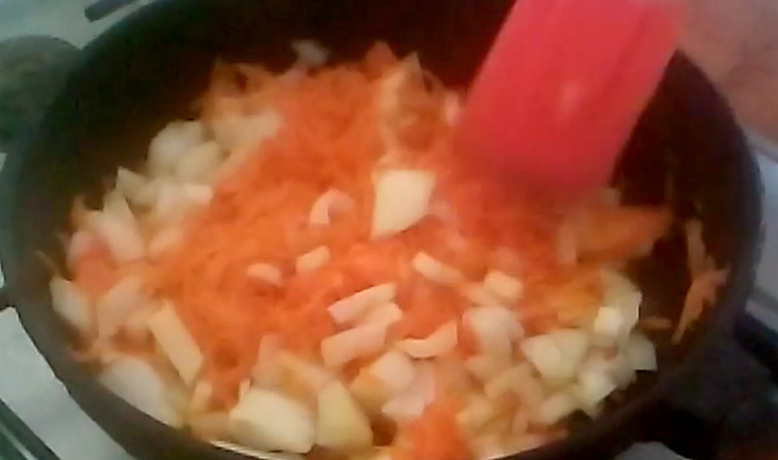 - Coupez la viande en cubes ou en cubes, râpez les carottes, coupez les oignons en cubes.