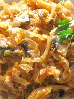 - Vous pouvez faire cuire du chou cuit avec des champignons séchés, mais les champignons doivent d'abord être trempés pendant 2-3 heures, puis cuits à la même eau jusqu'à tendreté. Servir avec des pommes de terre frites.