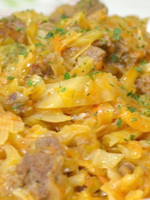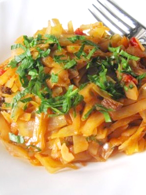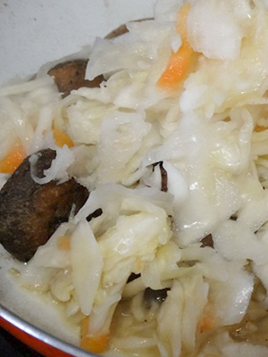 Chou braisé avec champignons et légumes.