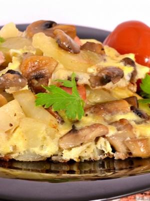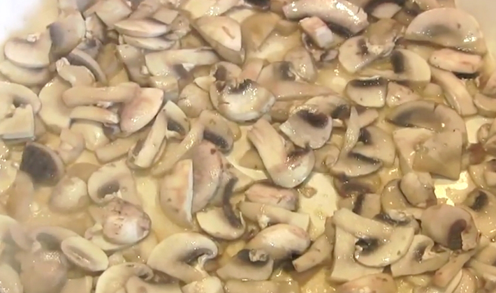 Ensuite, versez soigneusement dans le mélange obtenu les champignons sautés qui, avec l’oeuf, les oignons et les assaisonnements, peuvent être servis en toute sécurité après 7 à 10 minutes.