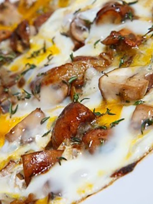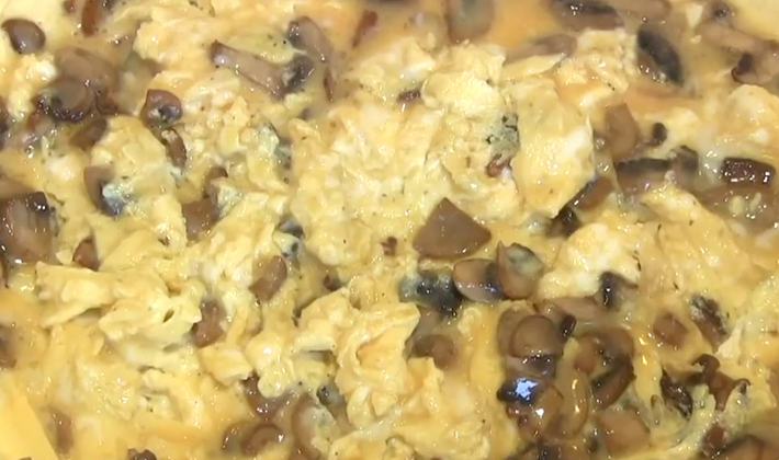 Les experts disent que les champignons se marient bien avec les œufs et la sauce au fromage.