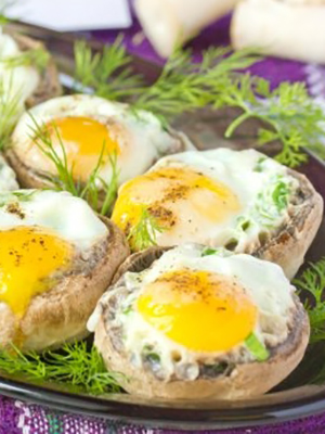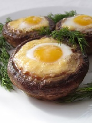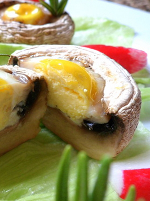 - Champignons cuits au four avec du fromage et des œufs de caille au four