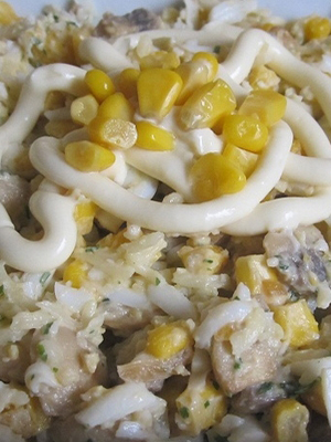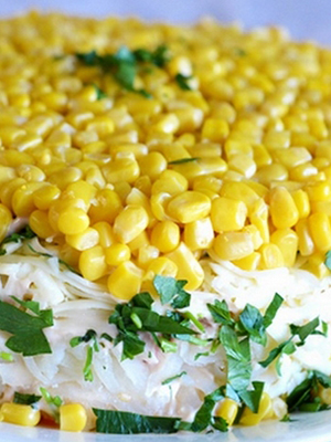 - La première couche est un mélange de viande et de jaunes, la seconde d'oignons hachés, la troisième de filets et jaunes en combinaison avec de la mayonnaise, la quatrième de champignons avec écureuils. Il faut se rappeler que le plat ainsi obtenu doit à nouveau être graissé avec de la mayonnaise et saupoudré d’une épaisse couche de fromage.