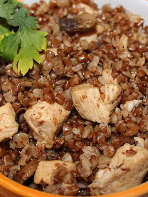 - Sarrasin avec poitrine de poulet et champignons à la crème sure dans une cocotte